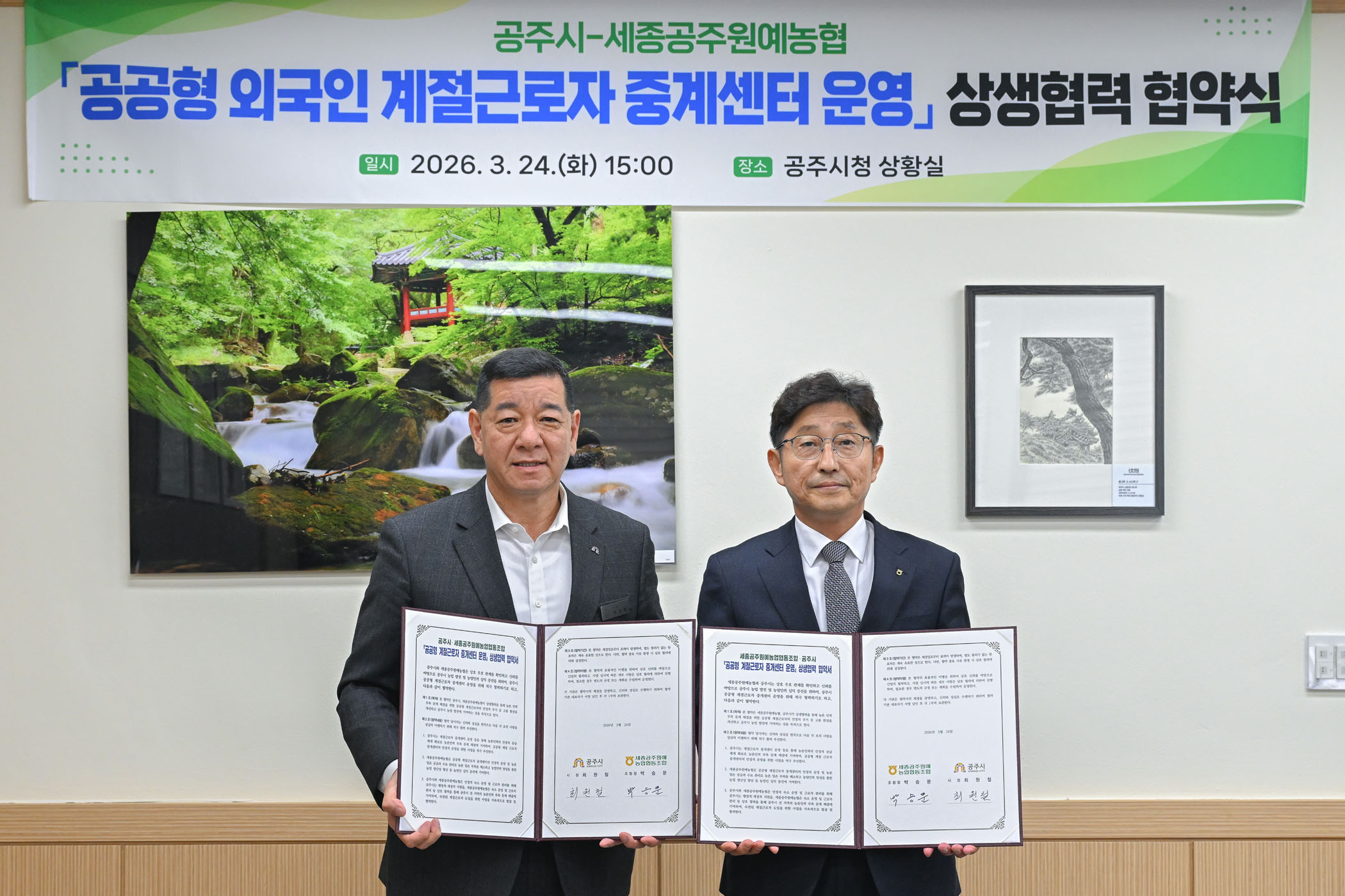 2026년 3월 24일 공주시-세종공주원예농협 공공형 외국인 계절근로자 중계센터 운영 상생협력 협약식